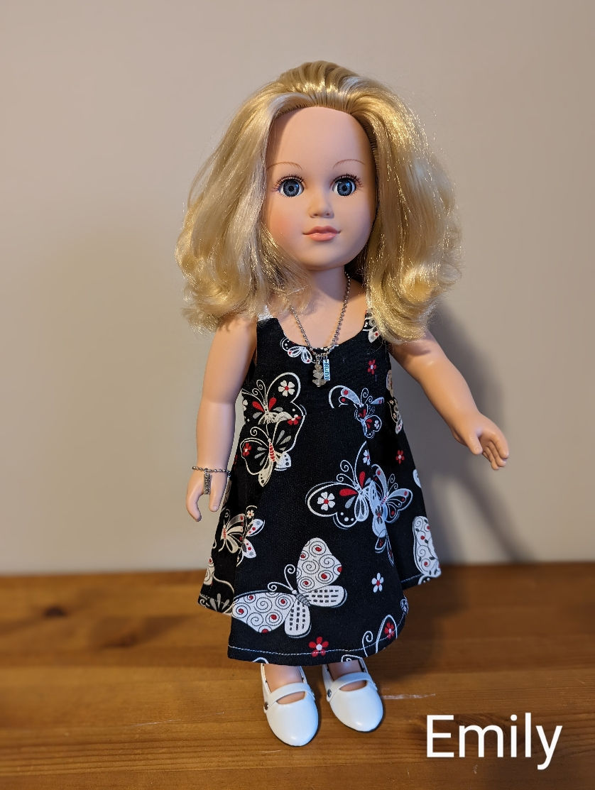 These beauties were all found in rough shape, but after some TLC they were given new life! Most had tangled, matted hair and some had blemishes that needed attention. A few may have evident small scars from their previous lives, but they are all adorable and ready to be loved and played with once again! Each 18" doll comes with a new handmade outfit, shoes, a handmade jewelry set, and an adoption certificate to which you can add your child's name.